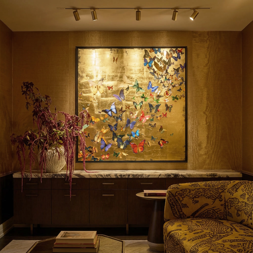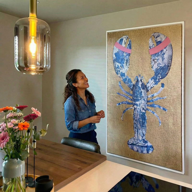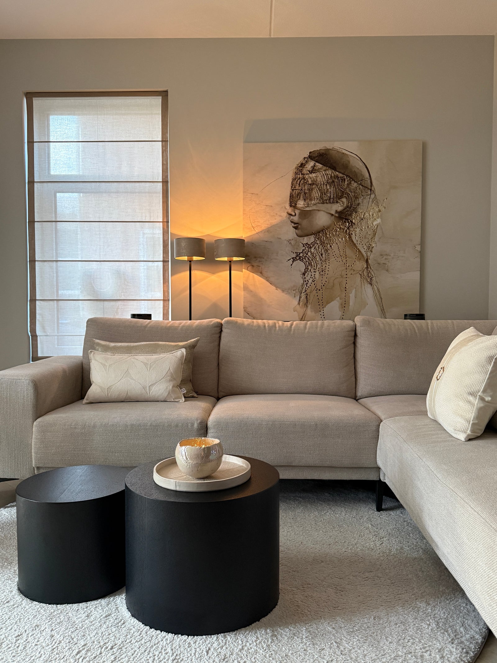 Alsof je kunstwerk een plek krijgt in een zorgvuldig samengesteld thuis warm, persoonlijk en met aandacht voor materiaal en detail.