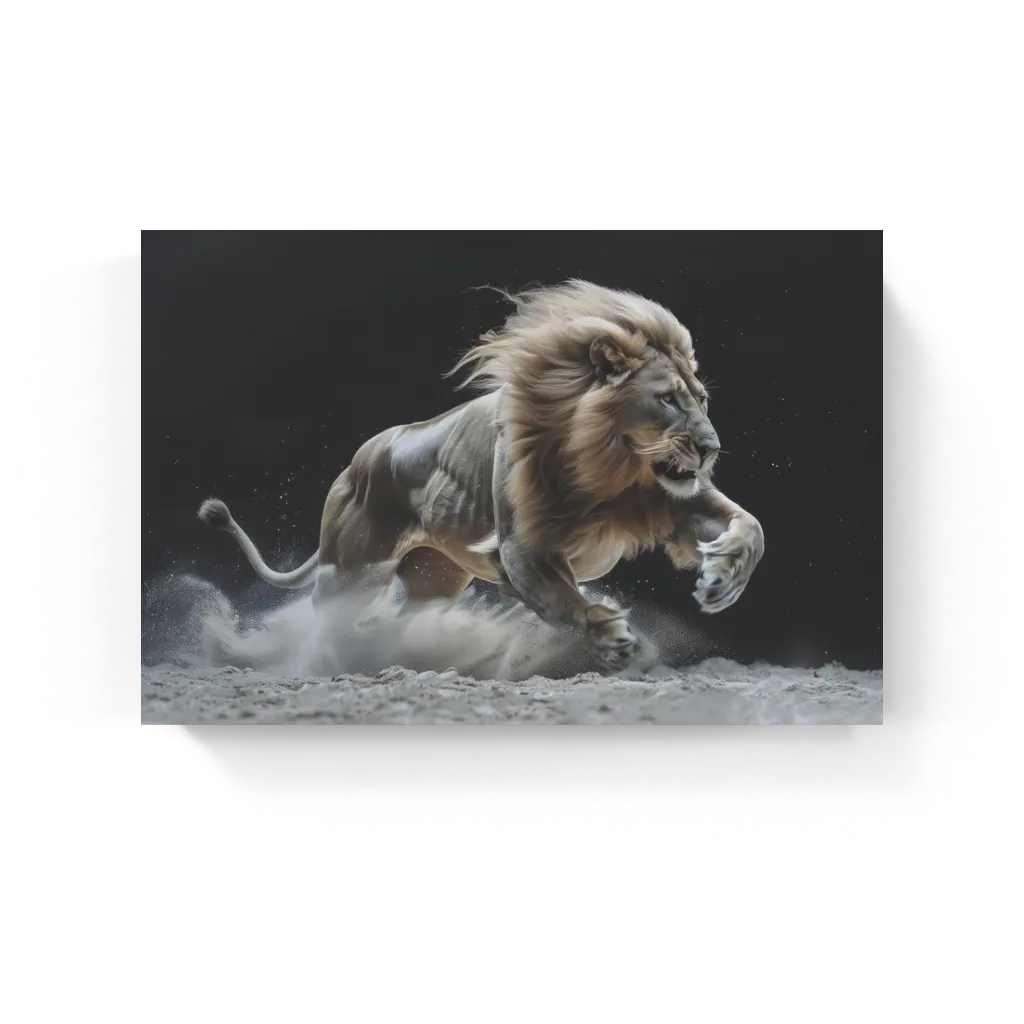 Aanvallende leeuw - leeuwen schilderij