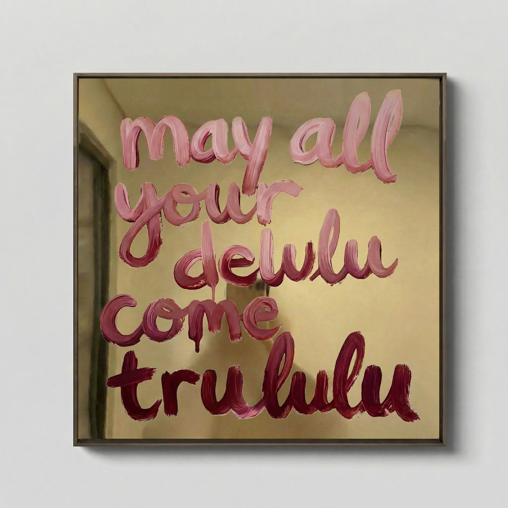 De handgeschreven look, met die juicy roze tinten op een warme, spiegelachtige ondergrond, maakt dit werk levendig en een tikje eigenwijs. Het vangt licht, aandacht én gesprekken.