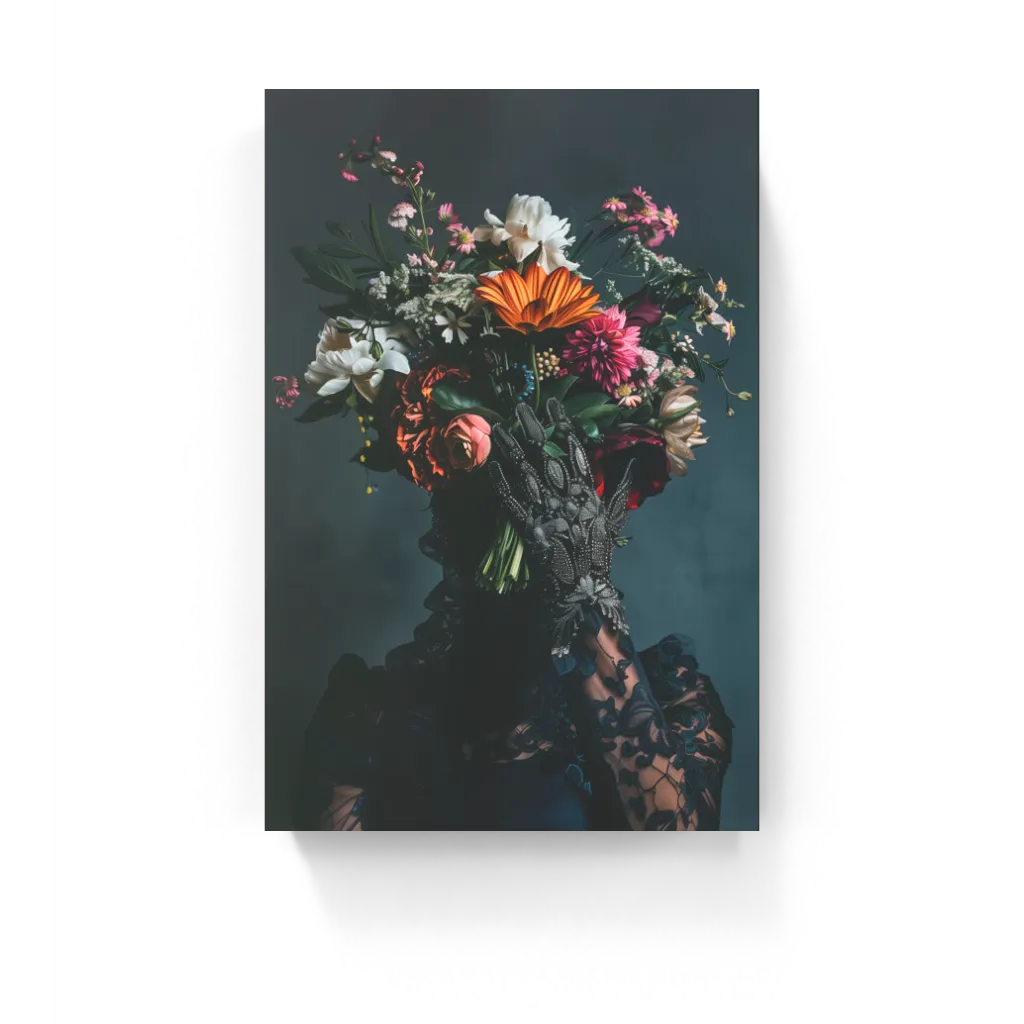Moody, vrouwelijkheid en bloemen in één betoverend kunstwerk "Floral" is een krachtig en moody schilderij van een...