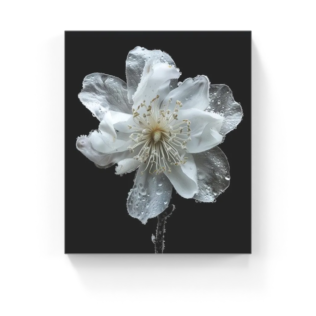 Deze prachtige afbeelding legt de delicate schoonheid van een bloem vast, gesuspendeerd in de tijd, omhuld door...