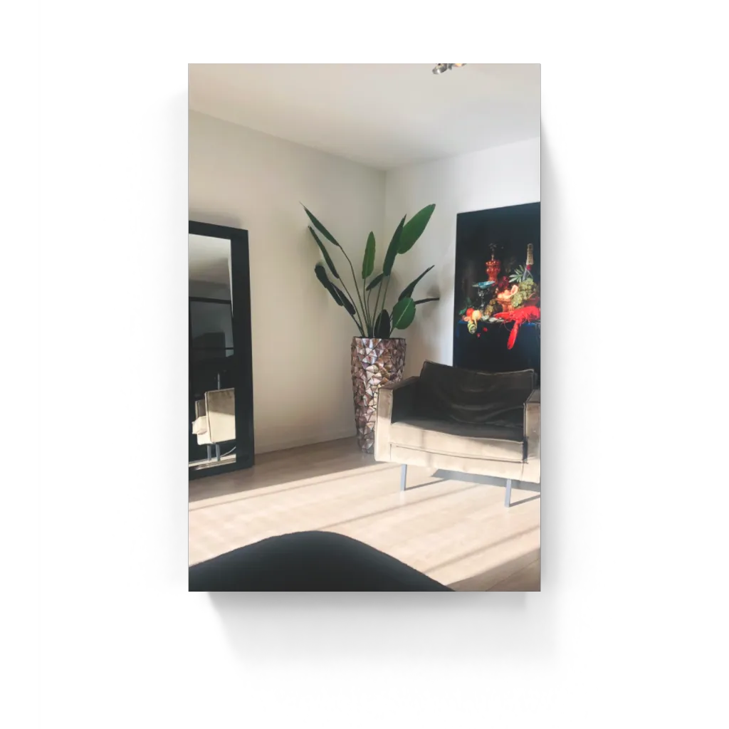 Plexiglas biedt ongekende veelzijdigheid als medium voor kunstwerken. Het kan in verschillende vormen en maten worden gesneden, wat betekent dat je een plexiglas schilderij kunt aanpassen aan jouw specifieke ruimte en stijl. Of je nu op zoek bent naar een groot statement stuk voor je woonkamer of een subtielere toevoeging aan je kantoor, plexiglas kan aan jouw behoeften voldoen. Ook is het mogelijk een prachtige met de handgemaakte baklijst toe te voegen aan jouw glasschilderij, deze lijst is 3,5 cm dik en geeft jouw glasschilderij een prachtige afwerking.