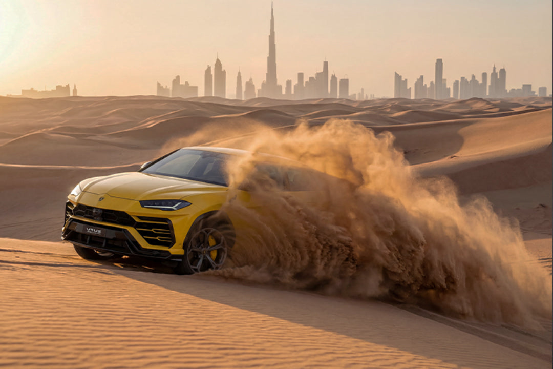 Lamborghini Urus – Meester van het Zand Deze spectaculaire foto toont de Lamborghini Urus in zijn...