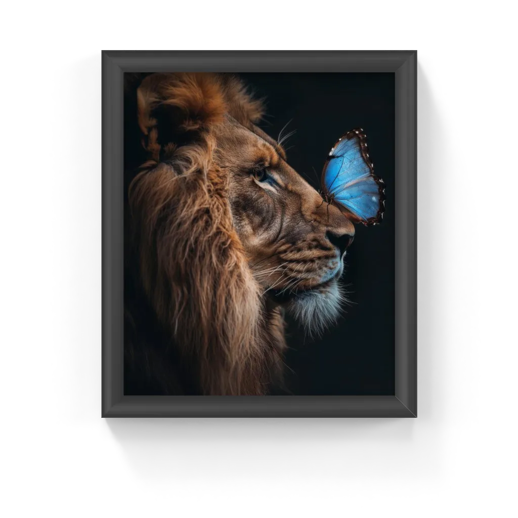 Dit kunstwerk vangt de essentie van kracht en schoonheid, waar de imposante leeuw naast de delicate pracht...