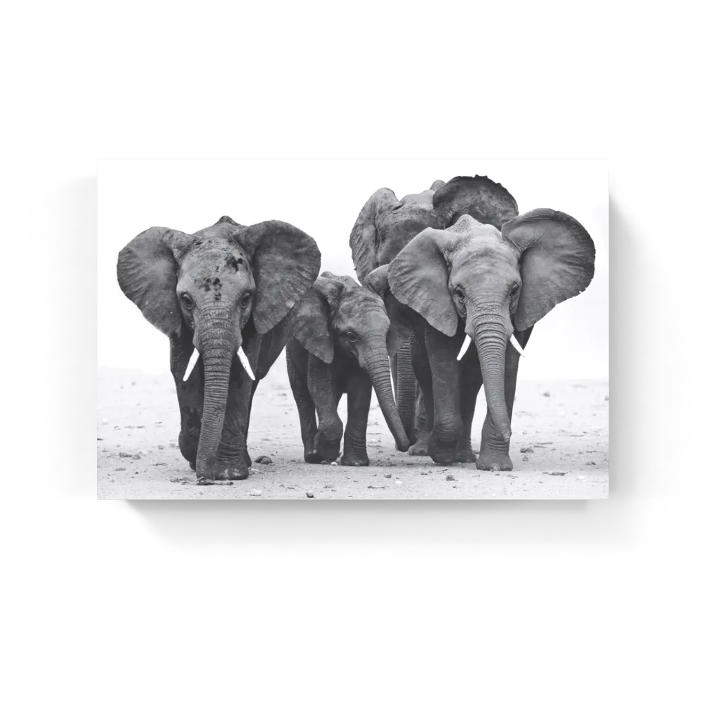 Olifanten familie - Zwart wit schilderij
