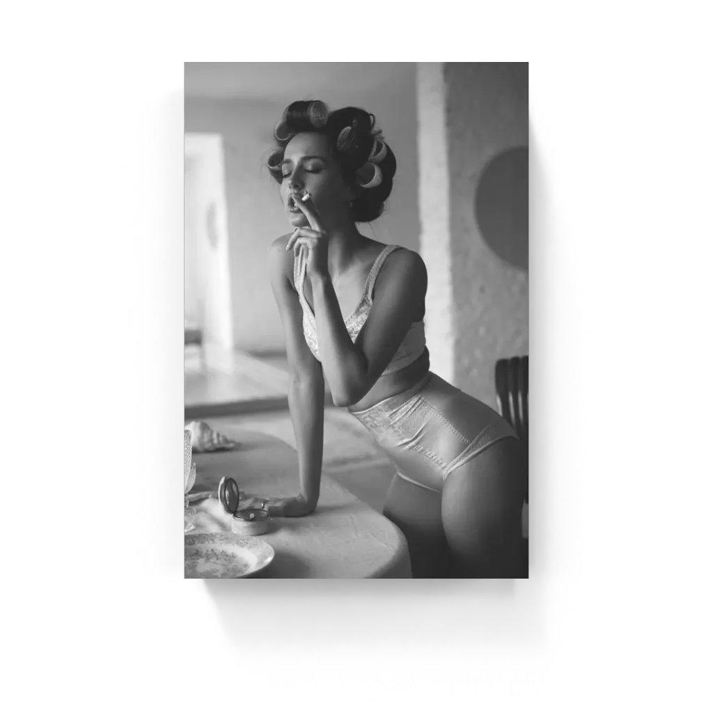 Creëer wat retro glam in je ruimte met dit schilderij! Dit zwart-wit portret vangt de sexy vibes...
