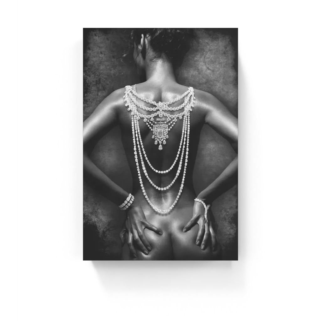 Deze prachtige zwart wit print van een vrouw met diamanten sieraden. Is een waar kunstwerk. Een werk...