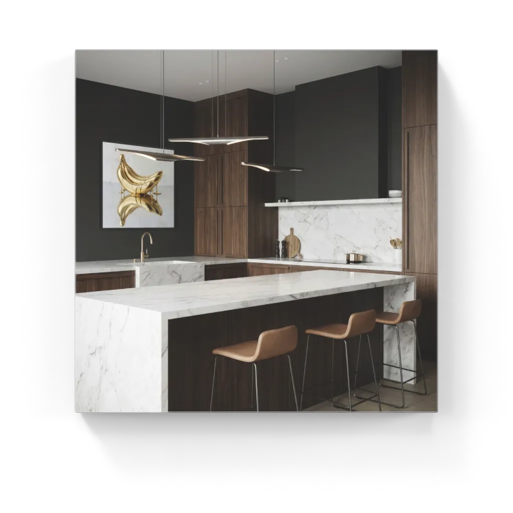 Plexiglas biedt ongekende veelzijdigheid als medium voor kunstwerken. Het kan in verschillende vormen en maten worden gesneden, wat betekent dat je een plexiglas schilderij kunt aanpassen aan jouw specifieke ruimte en stijl. Of je nu op zoek bent naar een groot statement stuk voor je woonkamer of een subtielere toevoeging aan je kantoor, plexiglas kan aan jouw behoeften voldoen. Ook is het mogelijk een prachtige met de handgemaakte baklijst toe te voegen aan jouw glasschilderij, deze lijst is 3,5 cm dik en geeft jouw glasschilderij een prachtige afwerking.